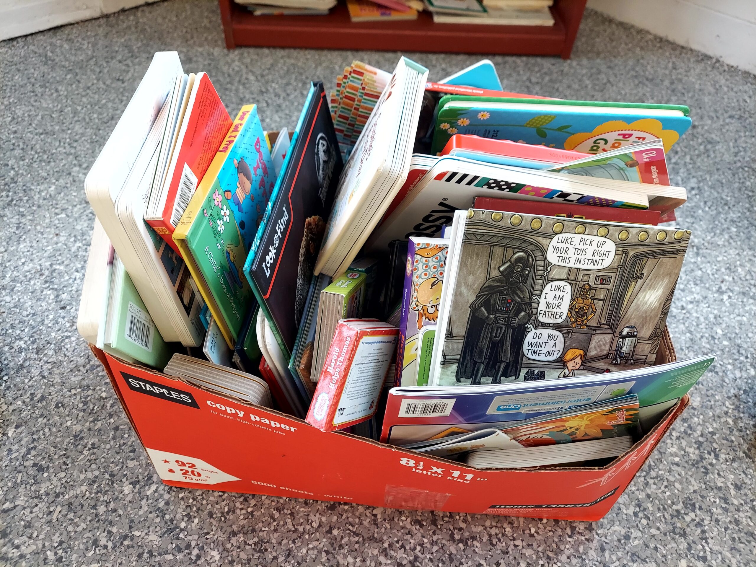 Seek a donation of a gently used bookshelf. Again, social media was the answer for us. We got lots of responses from people who had bookshelves to donate.