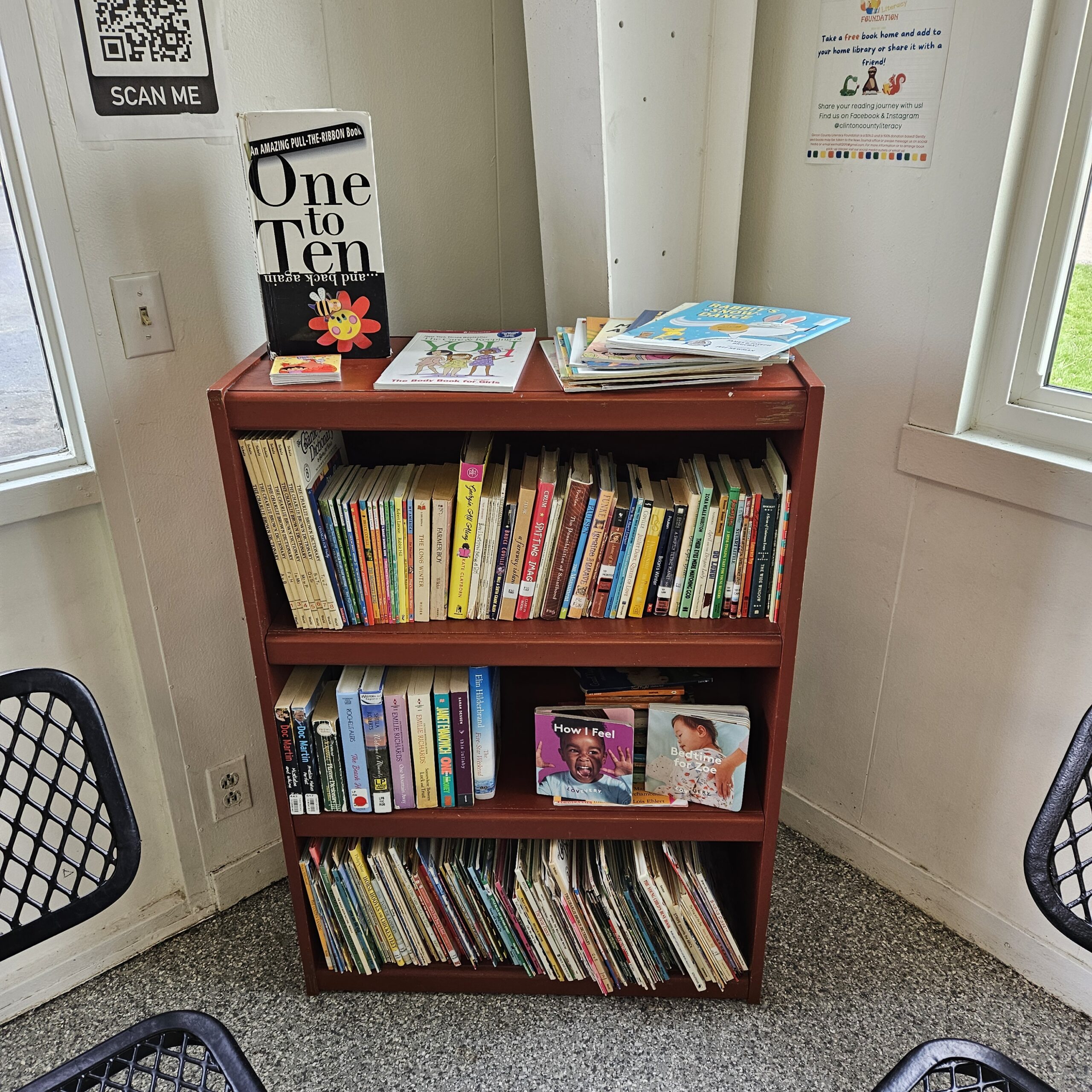 Our advocacy work started in local laundromats as the Clinton County Laundromat Library in November 2020. Volunteers purchased used bookshelves and placed them in four laundromats around Clinton County with the blessing of laundromat owners.